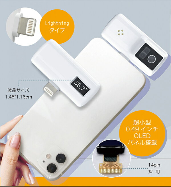 ポケット温度計 Lightning ライトニング端子専用 iPhone アイフォン アイホン 小型温度計 スマホ測定 測定 検査