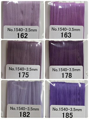 メーカー品切れの場合はお時間いただく場合がございます 予め了承ください お色違いや巾違い、また同じお色の5m巻きもございます No.1540 3.5mm 50m巻き 全部100色 うすピンク系はこちら ピンク系・赤系 はこちら 黄系 はこちら オレンジ系・茶系 はこちら 青系・紺 はこちら みどり系 はこちら 白・黒・グレー系 はこちら *No.1540 7mm巾 50m巻き 全51色* ピンク系・赤系 はこちら 黄系・オレンジ系・茶系・青系・紺 はこちら むらさき系・白・黒 はこちら みどり系 はこちら *同じ色の5m巻き* むらさき系 はこちら *リボン刺繍用の刺繍針の販売しています* リボン刺繍針はこちら