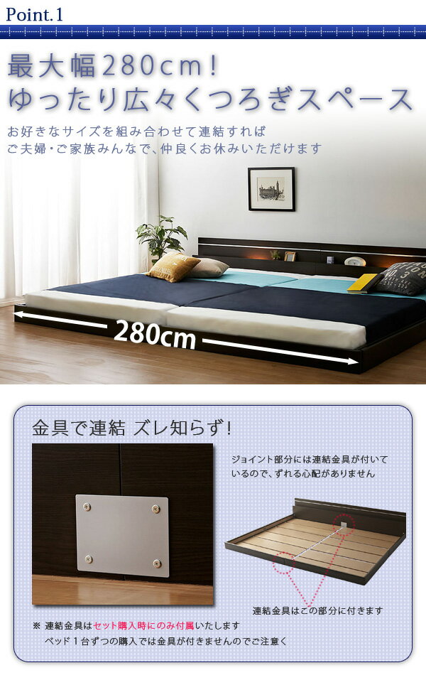 国産 日本製 ベッド シングル ローベッド 棚 照明付 連結 フロアベッド 【PLOMO】プロモ 二つ折りボンネルコイル マットレス付 セミシングル (代引き不可)【送料無料】